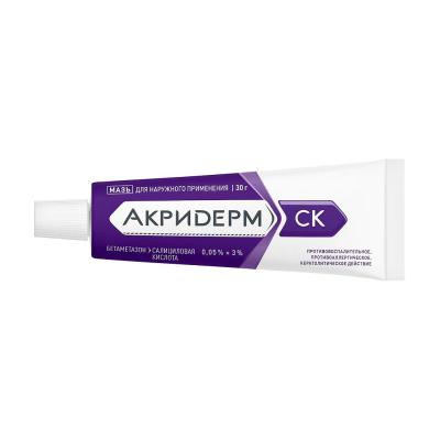 Акридерм СК — комбінований препарат для зовнішнього застосування, що має протизапальну, протиалергічну, антисептичну та кератолітичну дію.