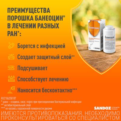 Банеоцин порошок для наружного применения 250 ме/г+5000 ме/г 10 г