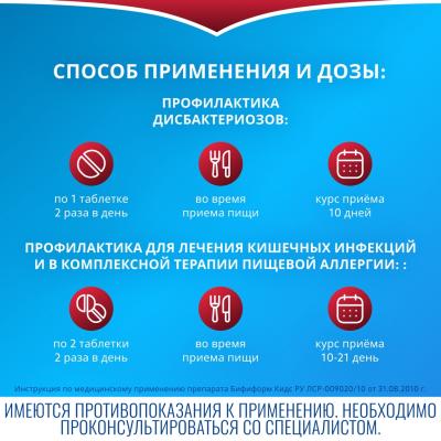 - Для профілактики дисбактеріозу: діти від 3 до 12 років — по 1 таблетці 2 рази на день, протягом 10 днів.