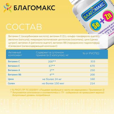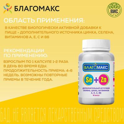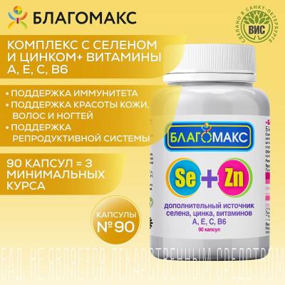 Благомакс селен и цинк с витаминами A, E, C, B6 капсулы массой 0,4 г 90 шт