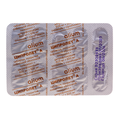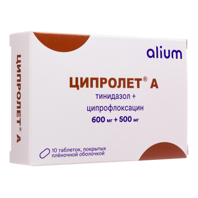 Ципролет А таблетки покрыт.плен.об. 600 мг+500 мг 10 шт