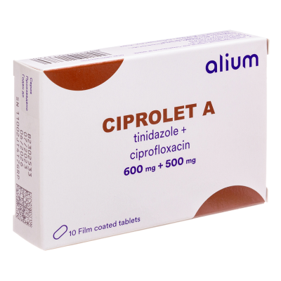 Ципролет®А є комбінованим препаратом, що має протимікробну та протизапальну дію завдяки активним компонентам — ципрофлоксацину та тинідазолу.