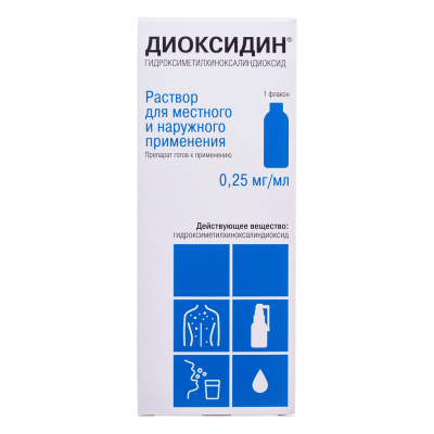 Диоксидин раствор для местного и наружного применения 0,25 мг/мл фл 150 мл+нажимное устройство 1 шт