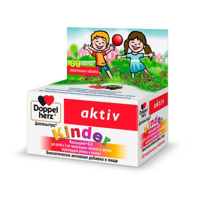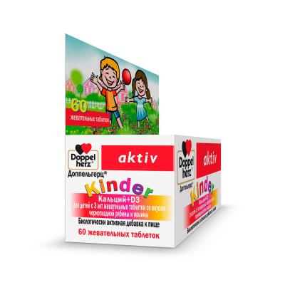 Доппельгерц Актив Kinder Кальций +D3 для детей с 3-х лет со вкусом черноплодной рябины и малины жевательные таблетки массой 1500 мг 60 шт