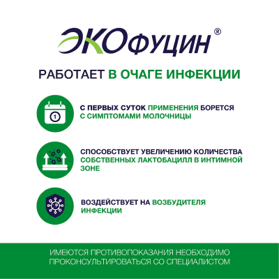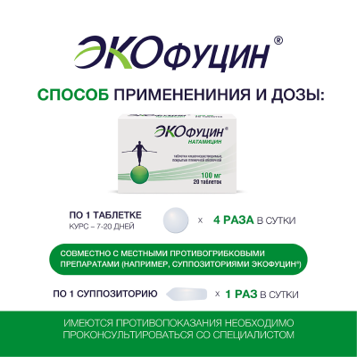 Поставили диагноз - хроническая молочница. Врач сказала, что нужно было своевременно лечиться, чтобы не запускать. Но при этом добавила, что всё излечимо. Выписала таблетки Экофуцин по 1 штуке 4 раза в сутки. Курс лечения 10 дней. Их необходимо принимать вместе с вагинальными свечами Экофуцин. Эффек ... т очень порадовал, а главное - стойкий. Ещё