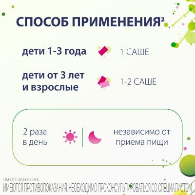- Дітям від 3 років та дорослим — по 1-2 пакетики двічі на день.