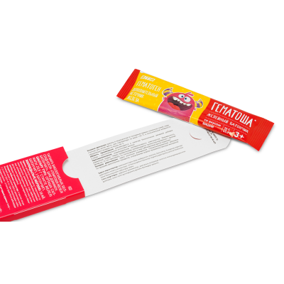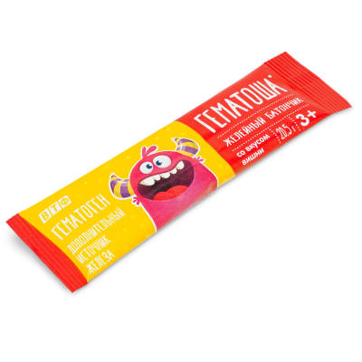 Гематоша® — це біологічно активна добавка (БАД), яка є джерелом гемового заліза у вигляді желейних батончиків у формі стиків. Не є лікарським засобом. Перед застосуванням рекомендується консультація з лікарем або фахівцем.
